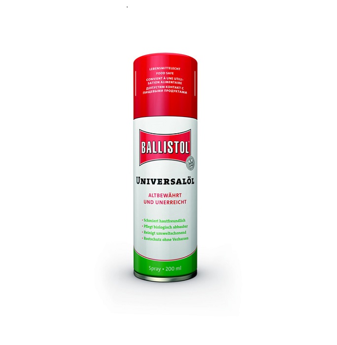 Ballistol Universal Oil werd ontwikkeld in 1904 en wordt sindsdien in Duitsland volgens hetzelfde recept vervaardigd. Alle actieve ingrediënten in Ballistol Universal Oil zijn bijzonder zuiver, van biologische oorsprong en volledig afbreekbaar. De basisolie voor Ballistol Universele Olie is medicinaal zuiver, vrij van chloorkoolwaterstoffen en bevat geen stoffen van dierlijke oorsprong.